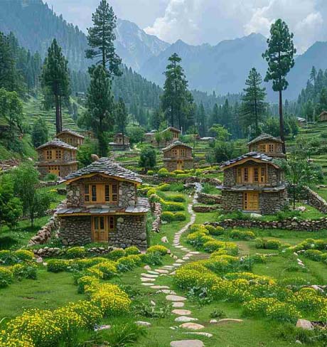 Imagine waking up to the crisp mountain air, surrounded by lush green meadows and snow-capped peaks that glisten in the sunlight. As you step outside, the melody of chirping birds and the gentle rustle of leaves accompany you on your journey through this picturesque wonderland.